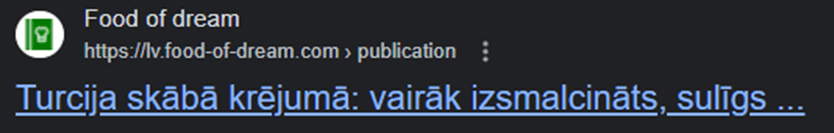 Automatically translated web page offers the state of Turkey in cream sauce