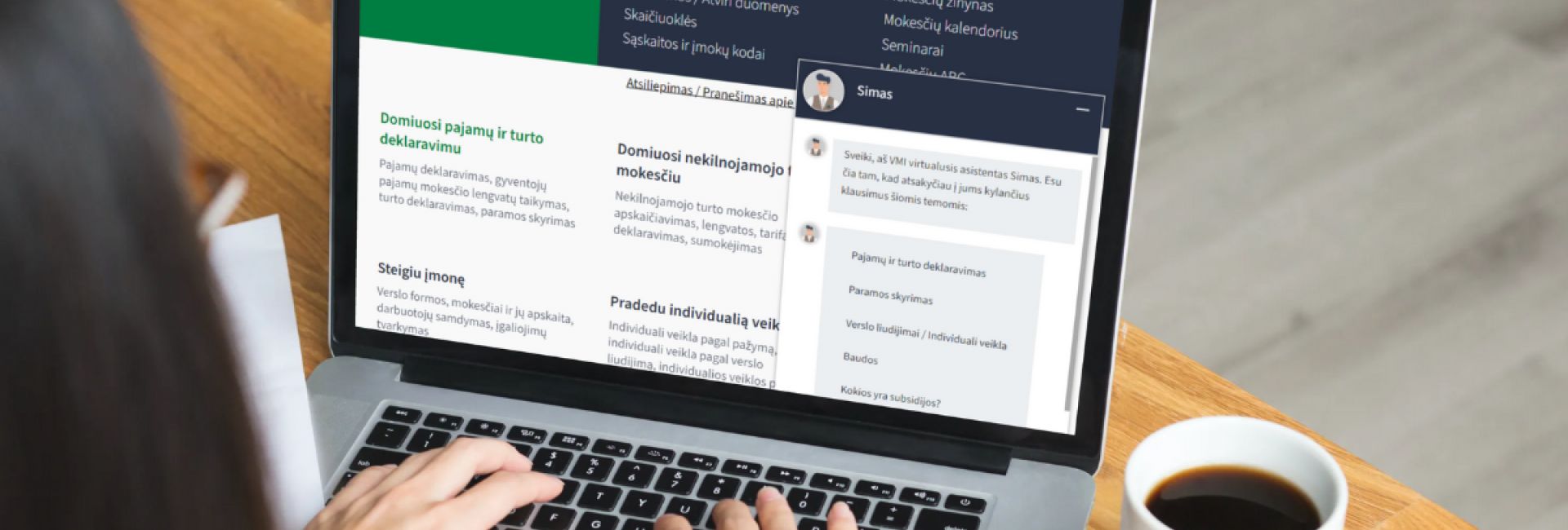 VMI virtuālā asistente projekta vadītāja Lina Kurlenskaitė teica, ka virtuālā asistenta, kas pazīstams kā VMI virtuālā grāmatveža SIMAS, ieviešana tika veikta, lai uzlabotu konsultāciju pakalpojumu kvalitāti un palīdzētu nodokļu maksātājiem ātrāk iegūt vispārīgu informāciju par būtiskiem jautājumiem, neierobežojot to skaitu.
