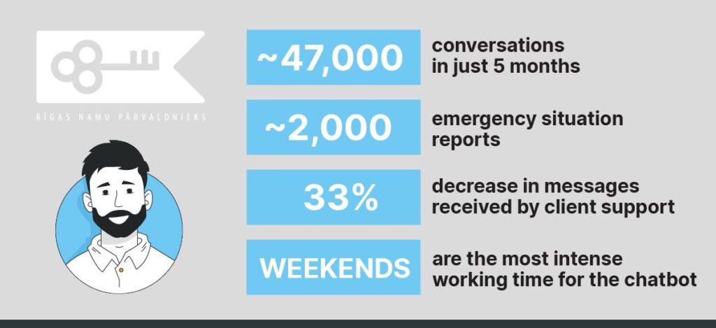 Jau 5 mēnešu laikā Juris veiksmīgi pabeidzis 47 000 sarunu, kuru laikā konsultējis klientus par Kopienas lēmumu pieņemšanu, maksājumiem un īpašumtiesību maiņu, reģistrējis ārkārtas paziņojumus vai organizējis tālāku saziņu ar klientu apkalpošanas centru.