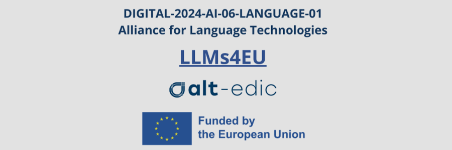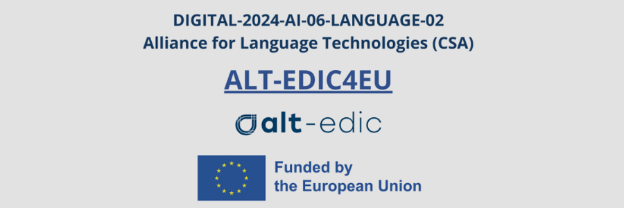 The ALT-EDIC4EU project is dedicated to the coordination of the European Language Technologies Ecosystem through European LTs and LLMs dynamic mapping, development of a robust and scalable European infrastructure, consolidation of a European centre for the evaluation of Language Technologies as well as organisation of training sessions, workshops and events.