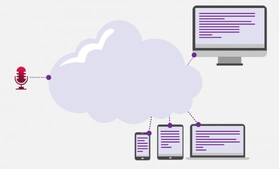This speech recognition solution is a cloud-based service that transforms input (teacher using a microphone) into textual output (real-time transcription) that's accessible through the browser on any preferable device such as a mobile phone, tablet, digital whiteboard etc.
