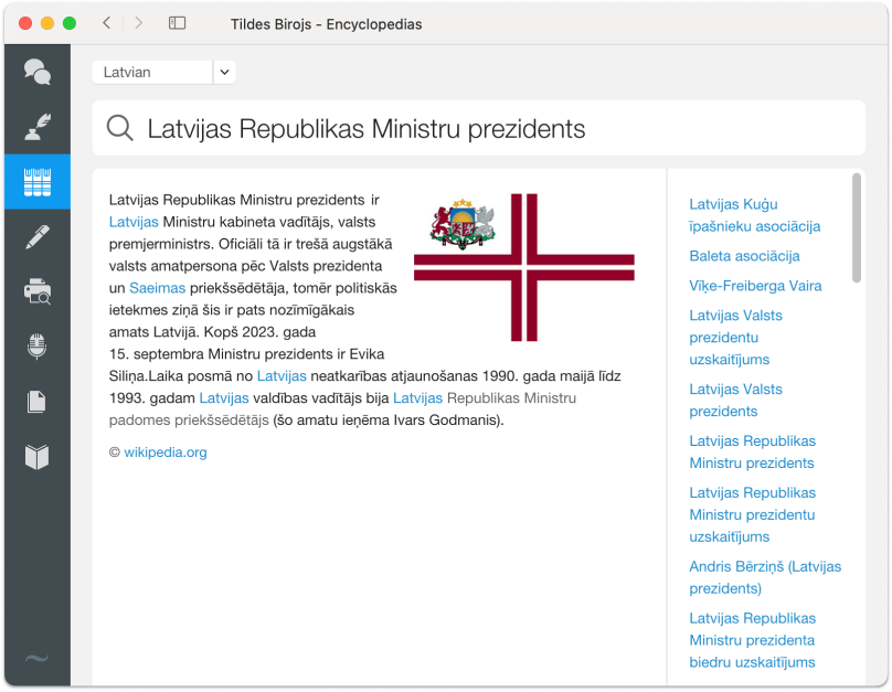 Grammar and spell check for Latvian, translating documents, voice-to-text conversion, encyclopaedias, thesaurus and many other tools together on your computer in Tildes Birojs.